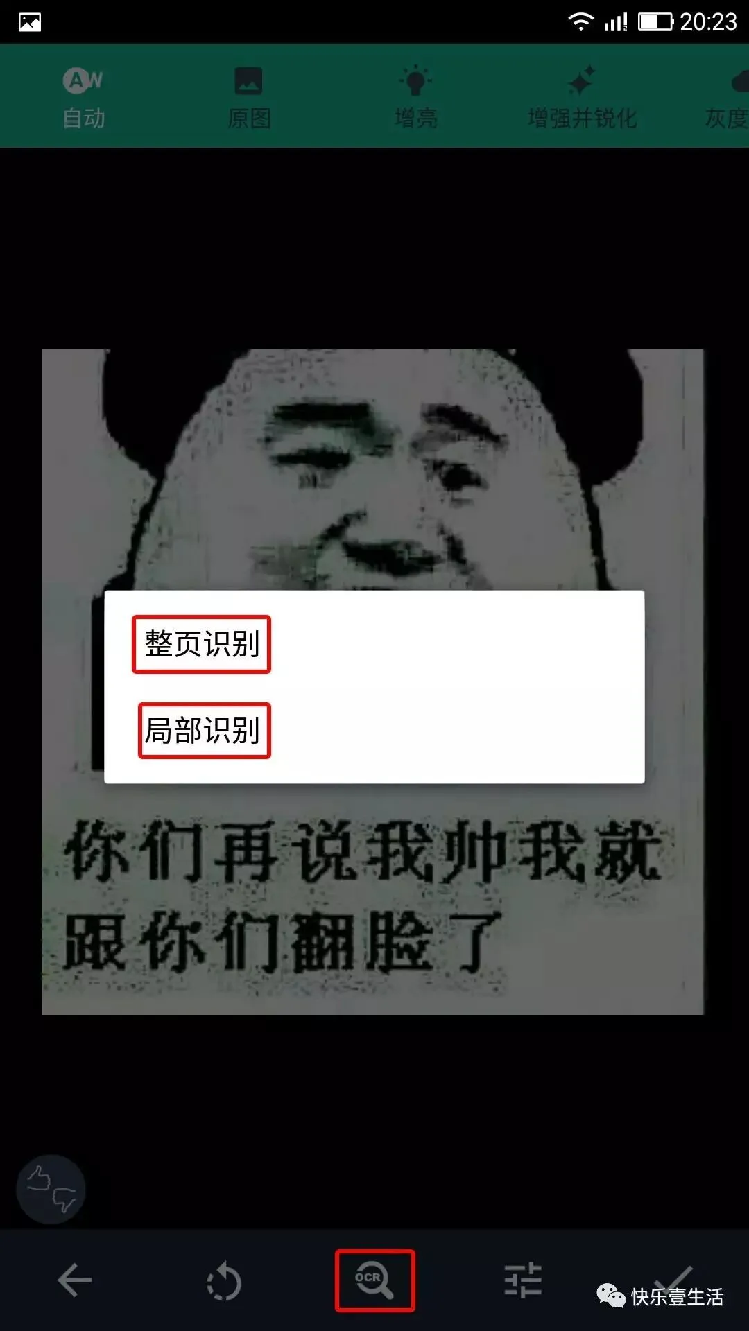 接着会让你选择整体识别或者局部识别。点识别按扭(OCR)如下图所示。