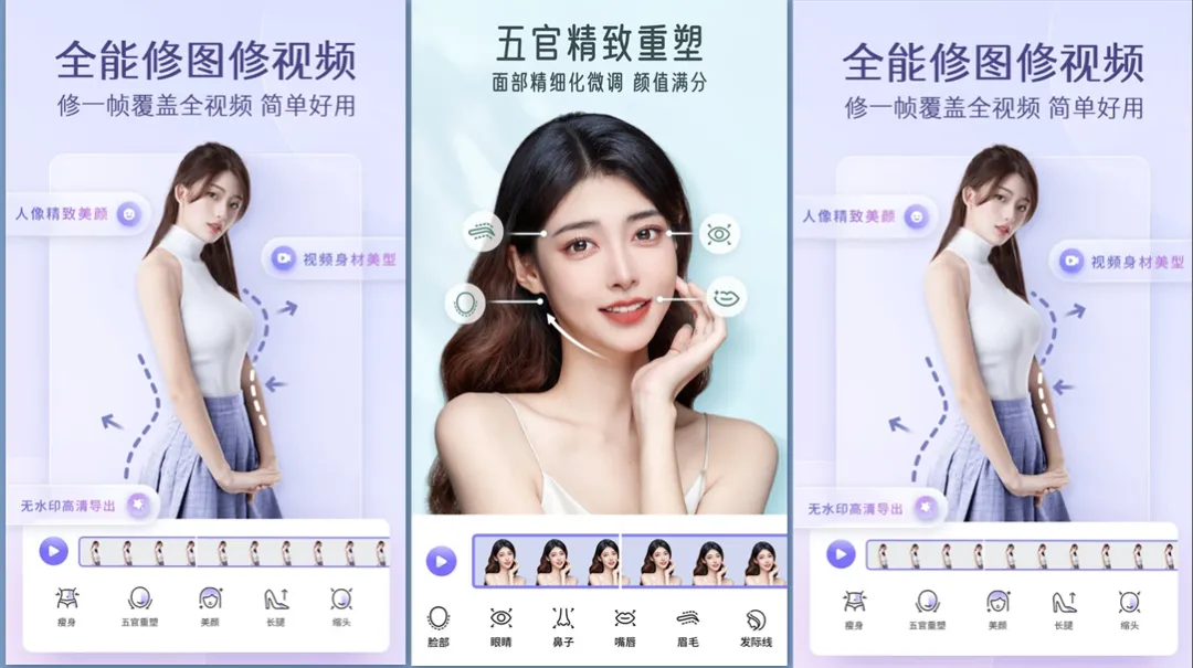 它还提供各种视频美化的演示教程,P图修饰、人体修饰、脸部优化、瘦腰、丰满塑形、修长美腿等,让用户自由、彻底地美化视频人物。