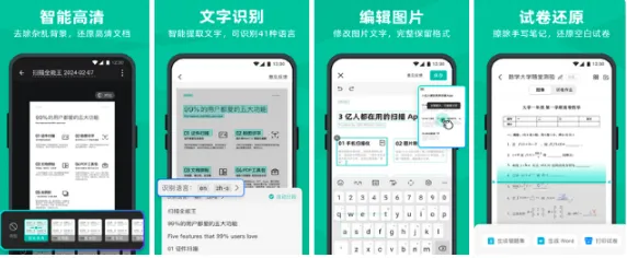 扫描全能王是一款集文件扫描、识别翻译、图片文字提取识别、PDF文档编辑、PDF加密、PDF转Word文档转换、文档防盗、电子签名等功能于一体的多功能智能扫描仪软件。