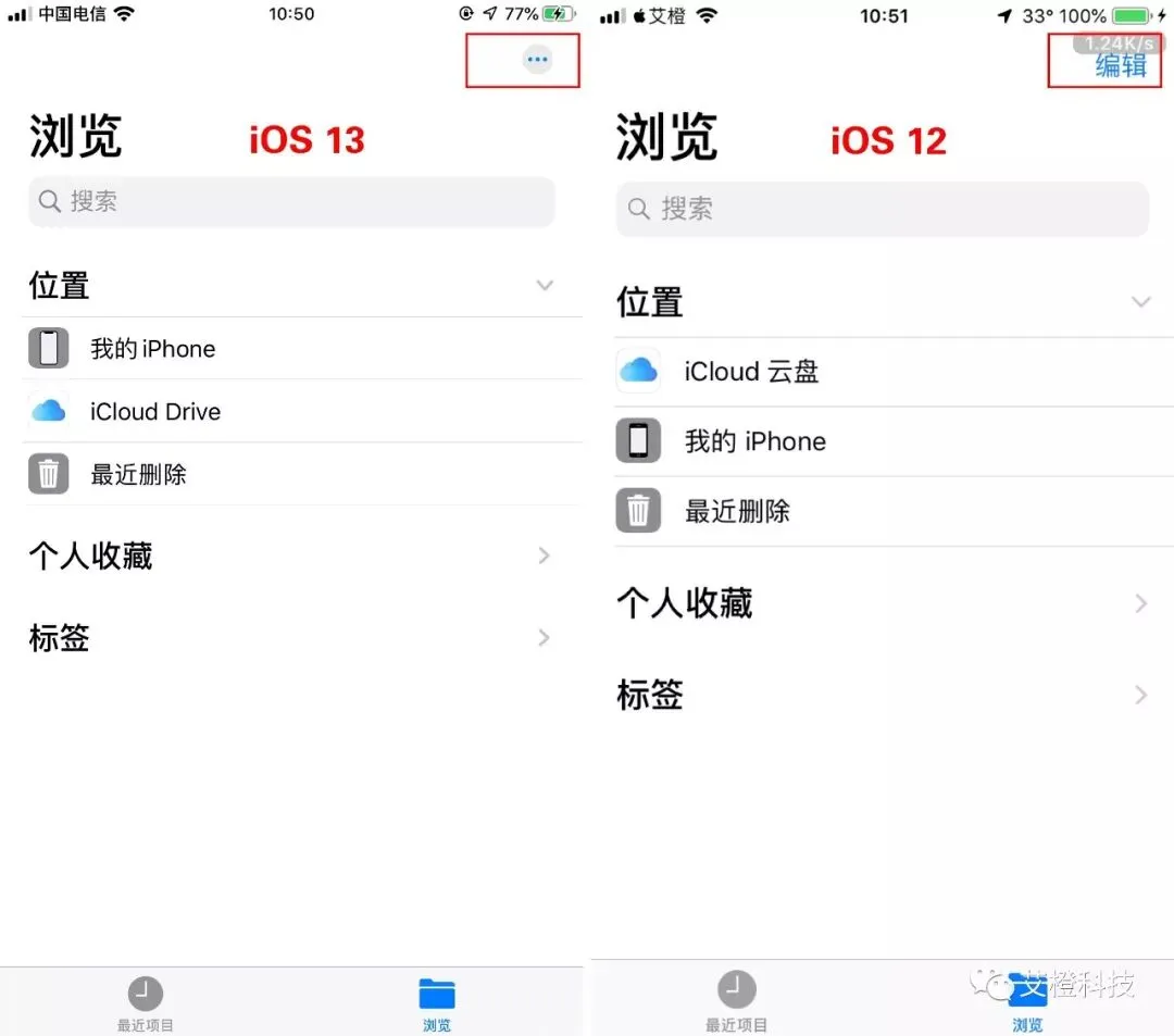 在iOS 13 系统,文件App 在界面上做了一些改变。