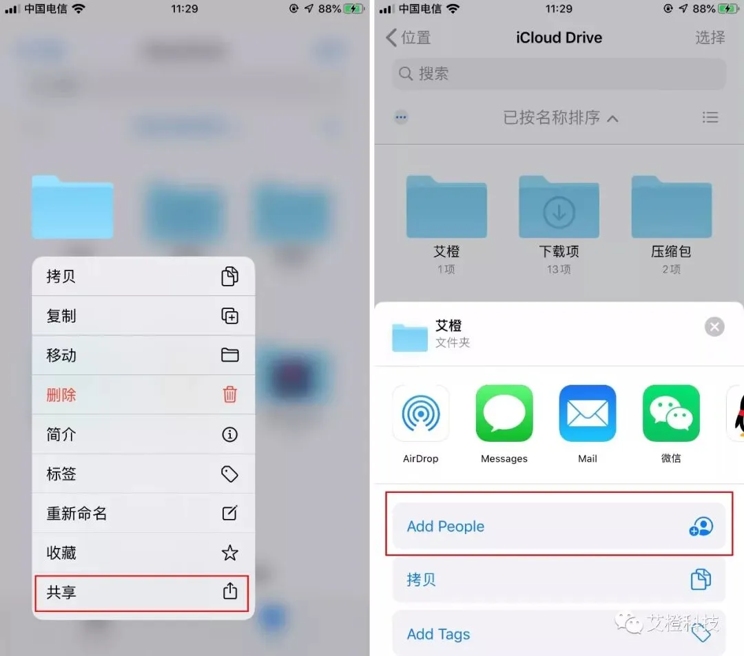 在iOS 13 的文件App,现在支持整个文件夹分享了。长按弹出菜单,选择共享,然后选择“Add People”。