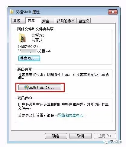 文件夹点击右键 → 属性 → 共享 → 高级共享。
