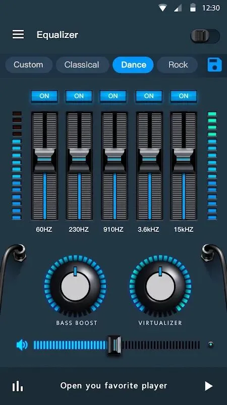 五波段均衡器调节,20+种专业预设效果,感受不同的音效;更可保存自定义预设,创建自己喜欢的预设效果