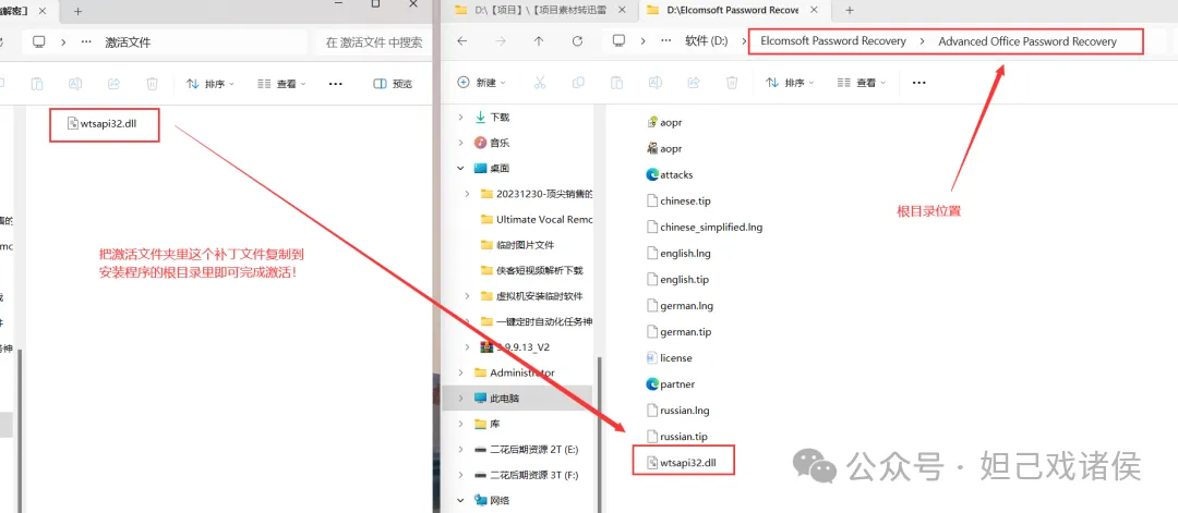 2.复制激活文件夹里的“wtsapi32.dll”文件,粘贴到程序的安装目录;