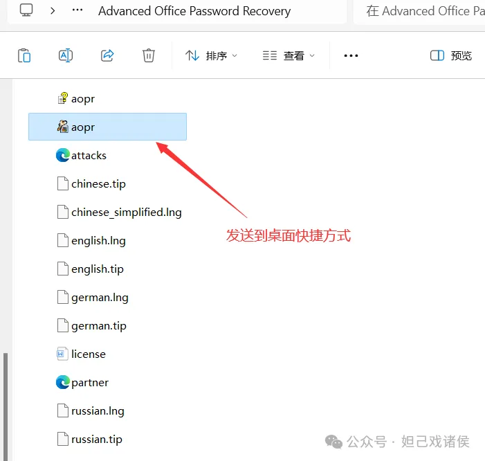 3.将运行程序“aopr”文件发送到桌面快捷方式;