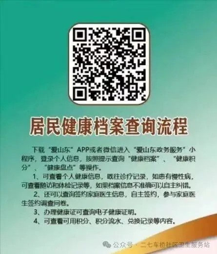 爱山东APP健康档案查询、健康积分、健康盘点流程 二七车桥社区,公众号:二七车桥社区卫生服务站爱山东APP健康档案查询、健康积分、健康盘点流程