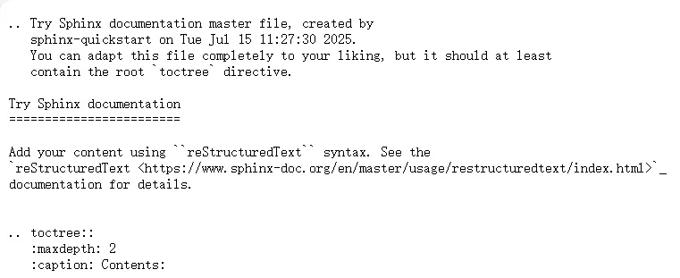 我们看看主页文件 index.rst 长什么样: