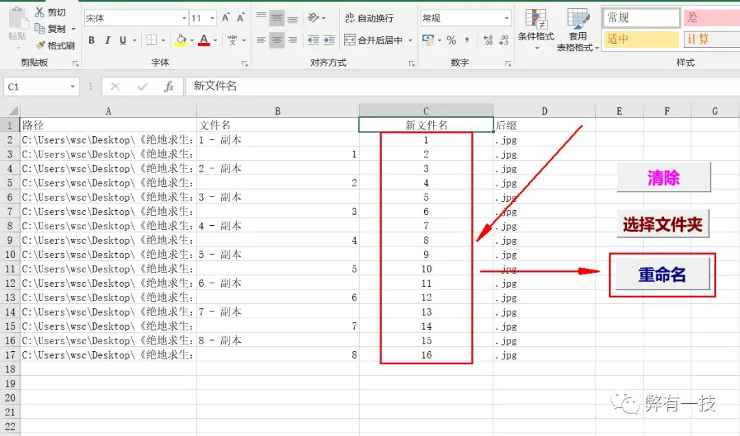 简单的办公文档,相信大家都会耍,但是大部分都只是入门级别,若是深入,还不知道能研究多深,特别是这Excel文档,有人还能作画,而PPT也是,简单的几个页面或许就加入了上千上万个动作在里面,可谓是博大精深,一般人还研究不来,然而,今天不是让大家怎样去深入的研究,而是给大家一个Excel表格成品,简单的一个文档,就能让你轻松的进行文件批量重命名,用起来很是方便,屡试不爽,小巧可人,赶紧收藏起来慢慢使用吧。
