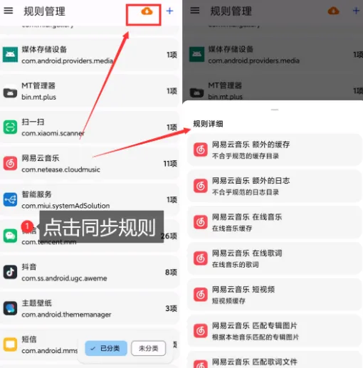 你可以点击上面的规则管理,这里清理功能更加强大,规则直接可以同步网络的别人的清理规则,规则上也会显示将要清理什么内容,缓存什么!非常详细!