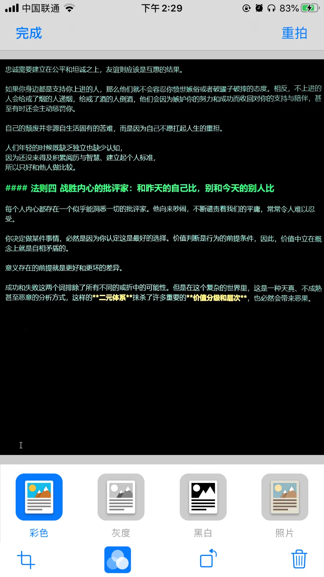 对于拍摄到的内容,可以为其添加内置的「滤镜」效果——灰度、黑白和照片,不同的滤镜得到的效果差异较大。