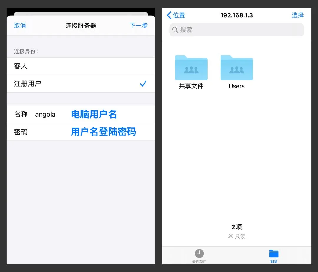 在文件 App 上以「注册用户」身份登录时,需要填入电脑的用户名和密码,但在电脑上进行设置时,并没有收到相关的提示,导致有些朋友不清楚这里要填入什么。