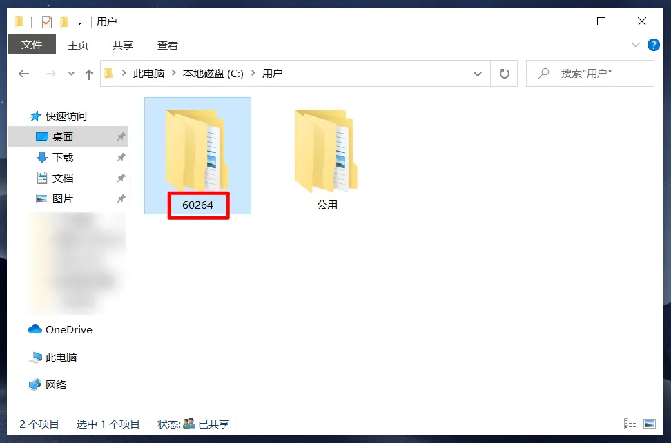 按照「此电脑–C 盘–用户」的路径打开文件夹,其中应该有两个文件夹,一个名为公用,另一个文件夹的名称就是电脑用户名,这个用户名一般是取自你微软账号的前缀。
