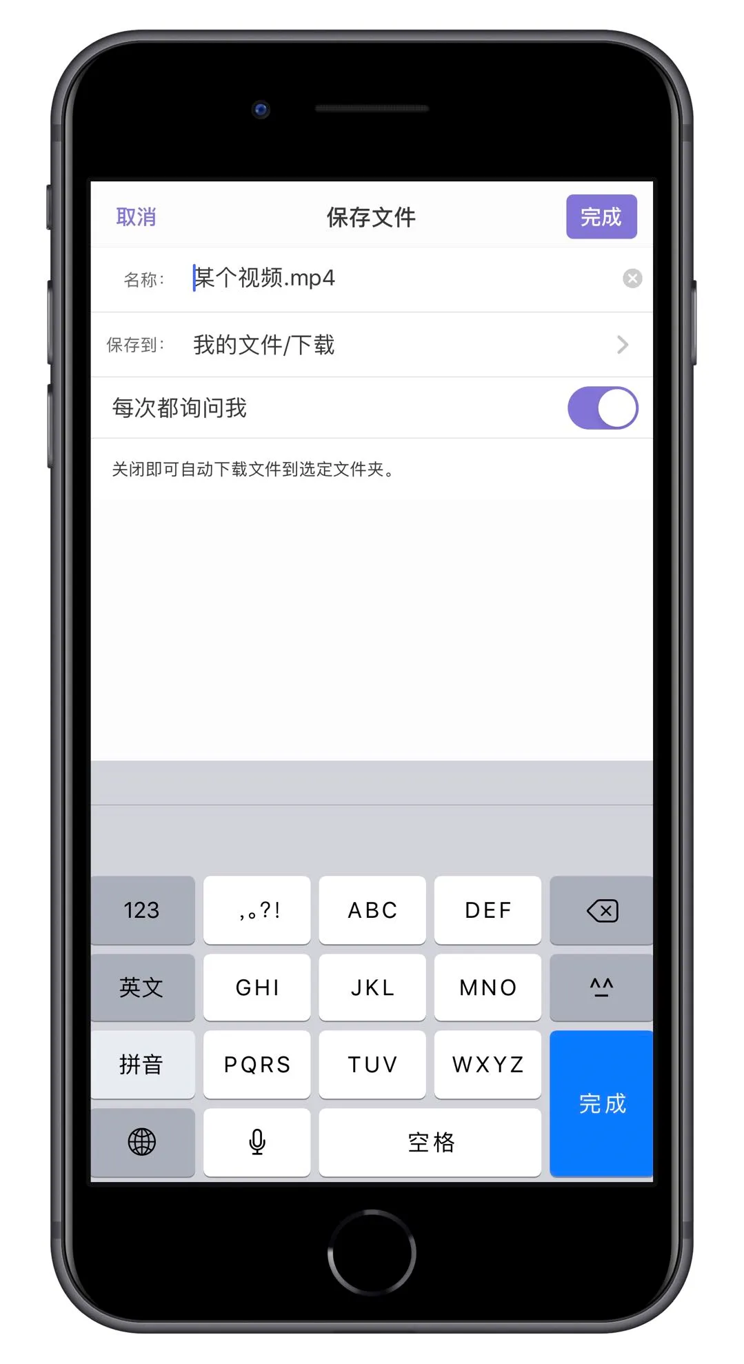 内置的浏览器最大的优点不在于搜索,而在于下载文件,例如下载视频,将视频下载链接粘贴到搜索框,返回的页面会提示保存文件,修改文件名称和位置,最后点击「完成」即可下载。