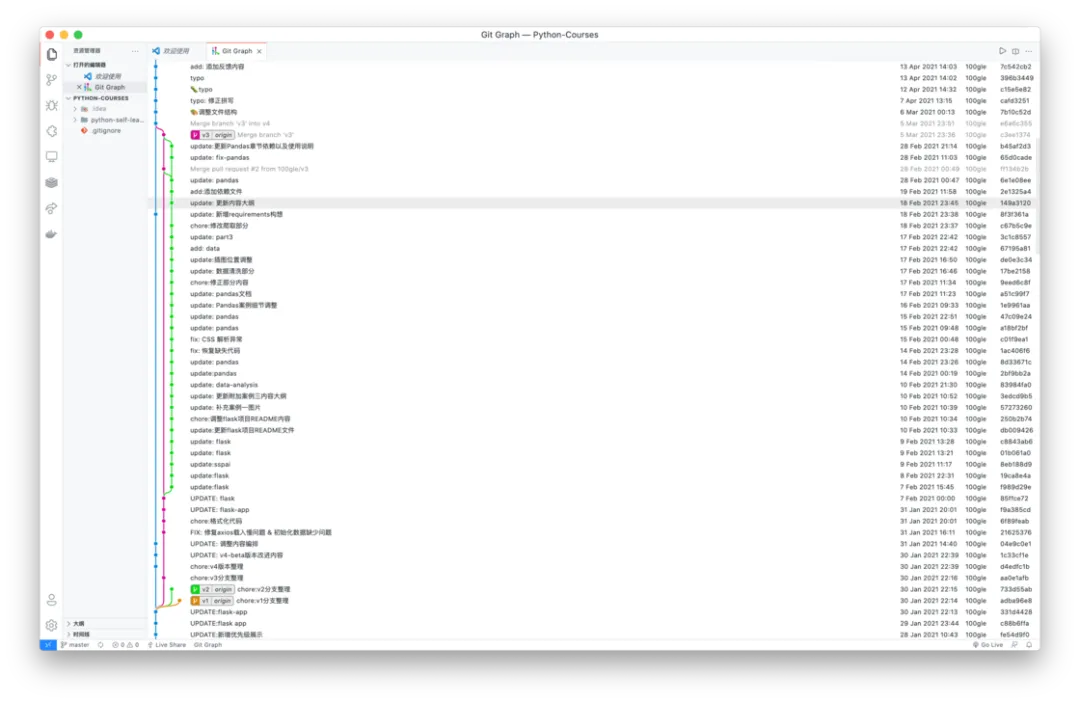 我在少数派上的《Python 自学手册》付费教程就是全程通过 Git 来完成版本的控制与内容的修改。