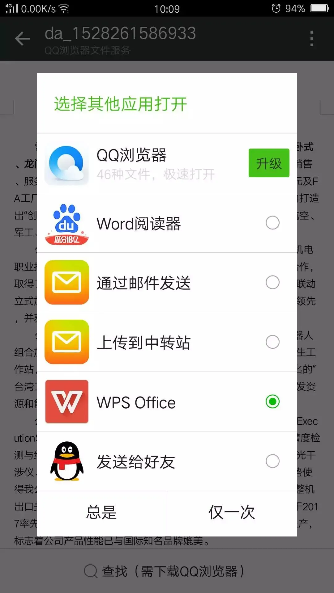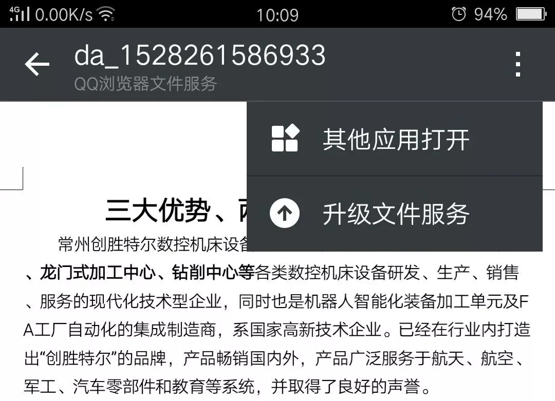 第一步:点击收到的文件→用其他应用打开→右上角三个小点→其他应用打开