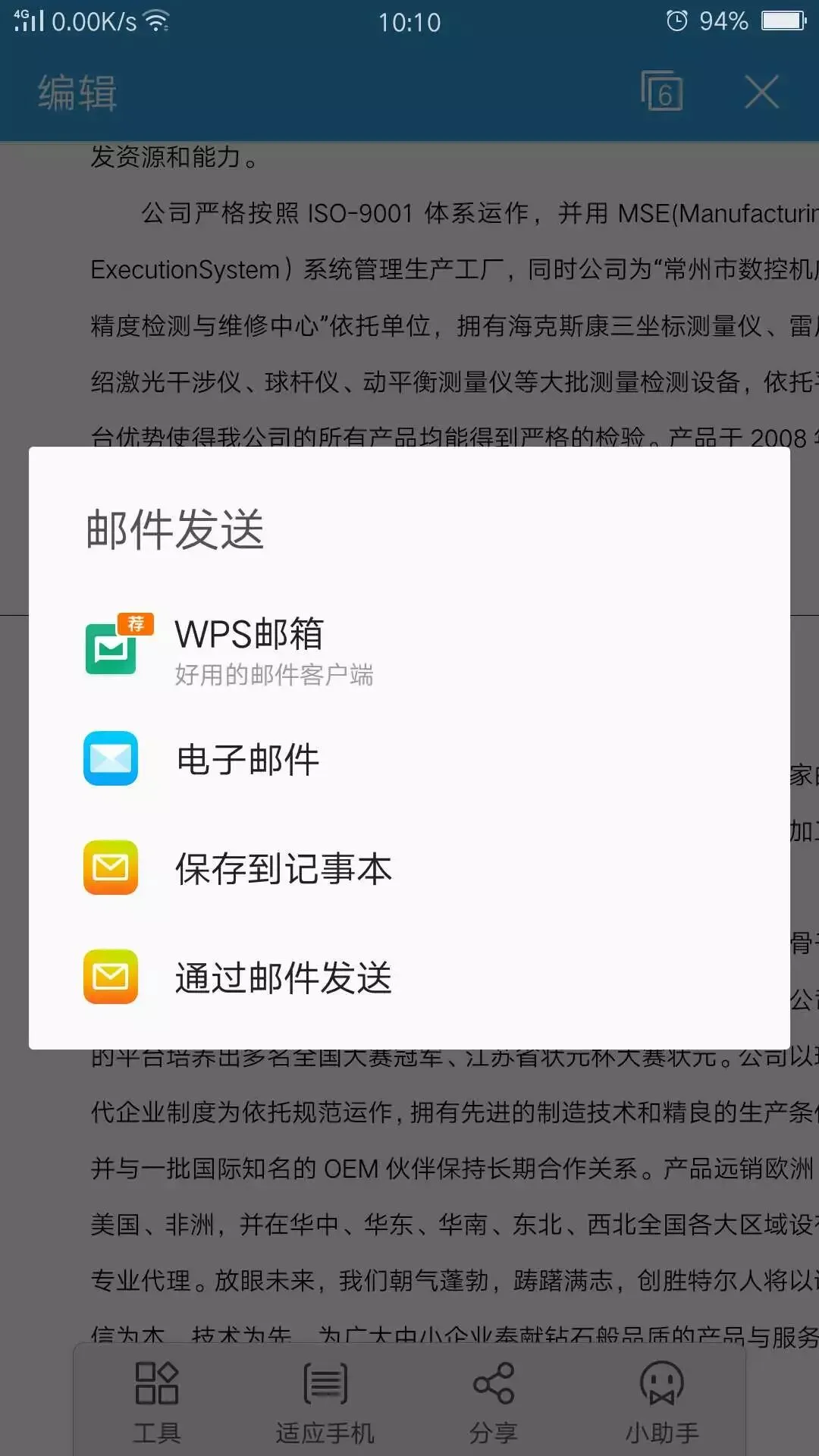 第七步:点手机屏幕下方“分享”→通过邮件发送,发给指定的邮箱