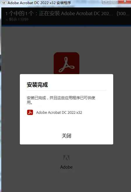 安装后,点击关闭