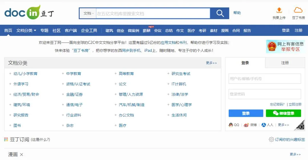 2、豆丁网(http://www.docin.com/)
