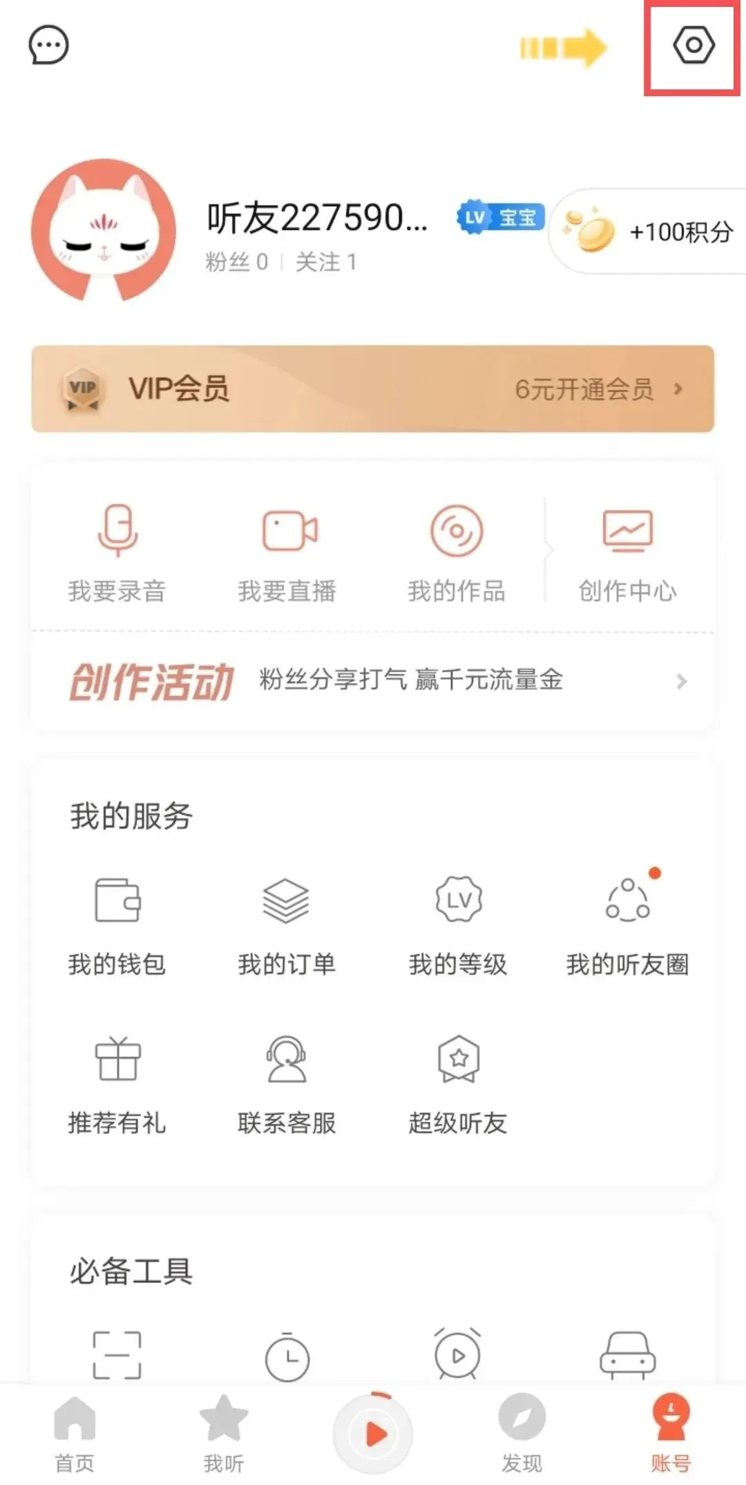 回到账号页面,点击右上角设置↓
