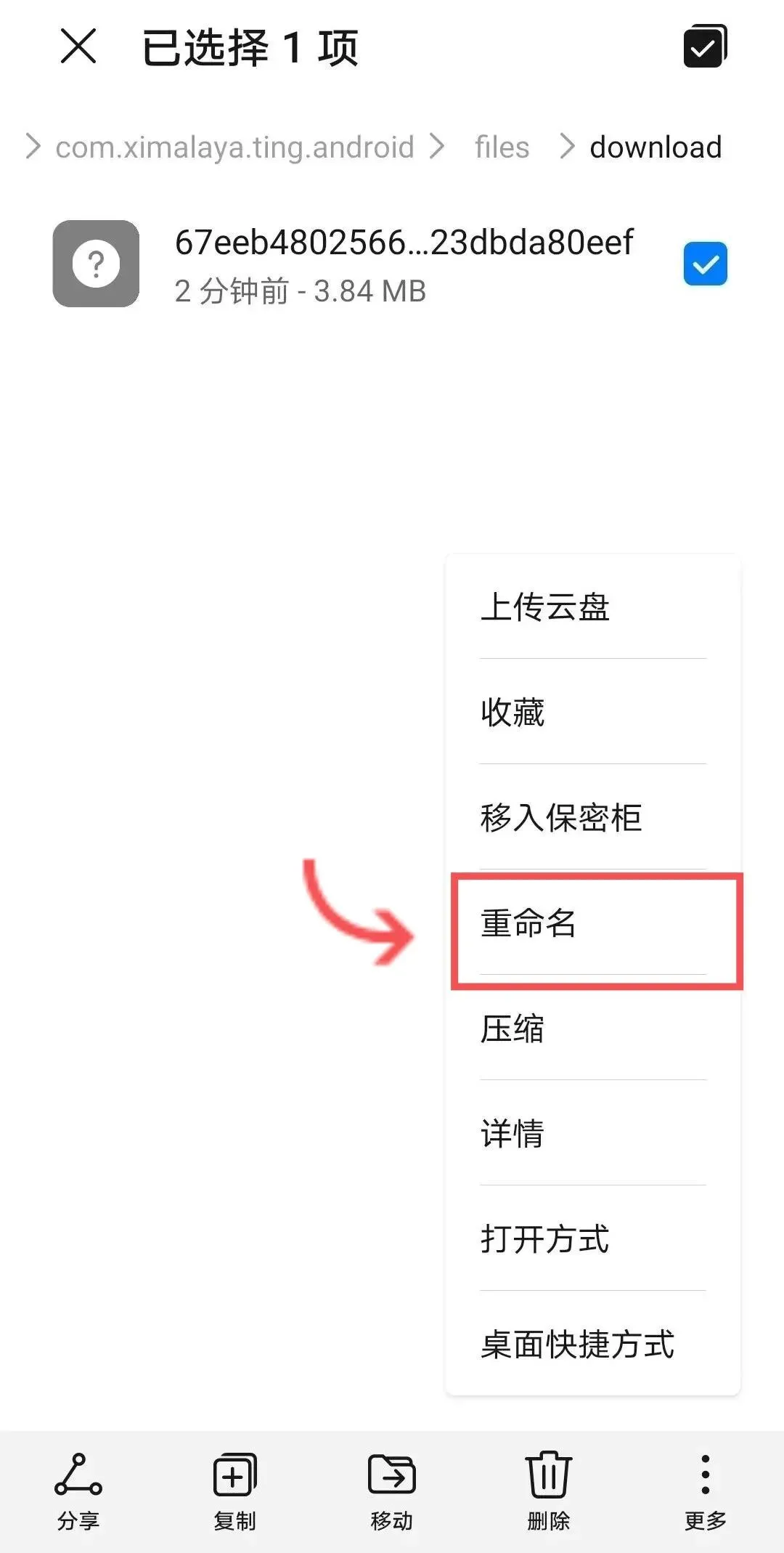 别急,长按文件,修改名称↓