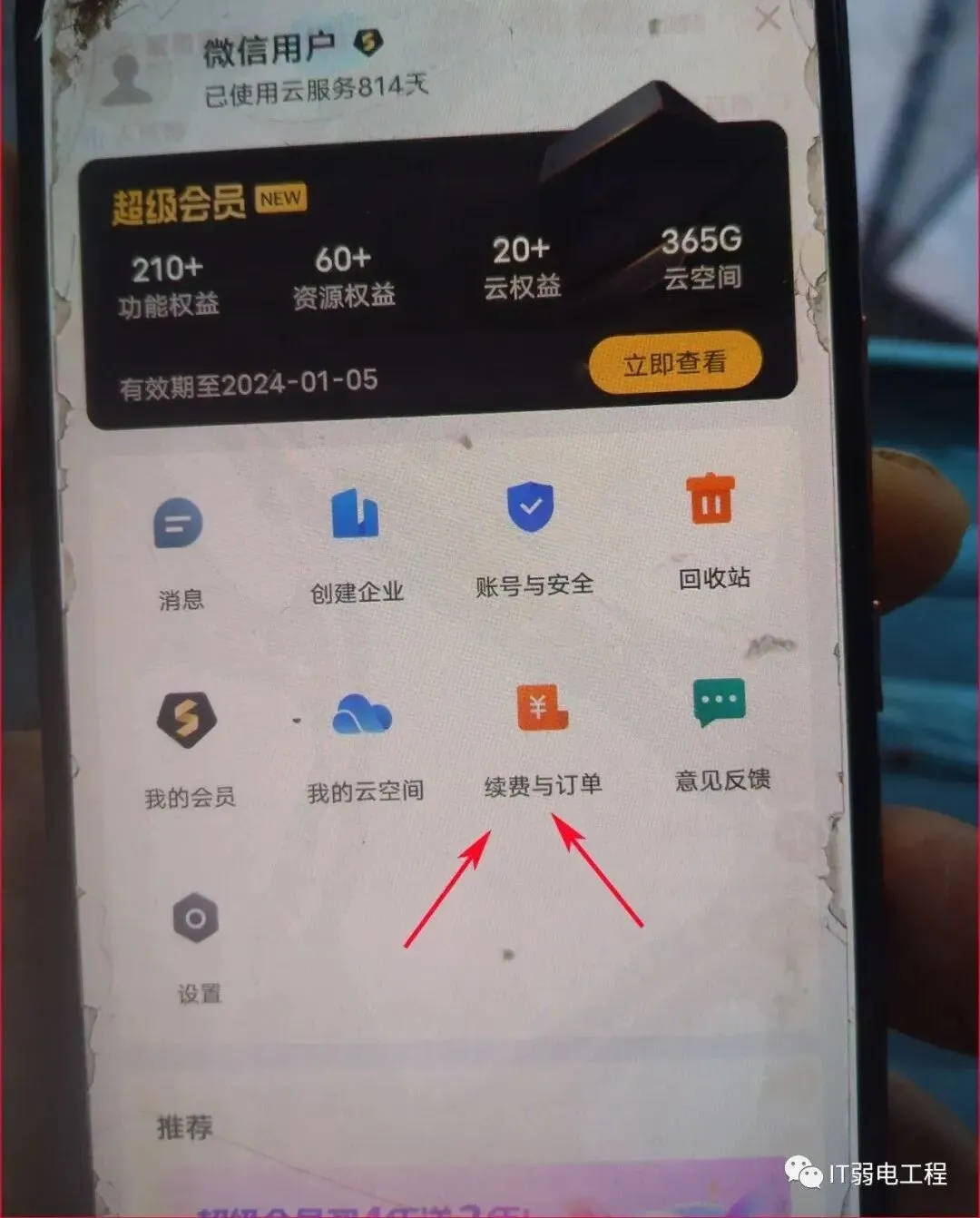 首先,在手机的应用商店或应用市场中搜”金山文档”然后下载鼎并自动安装.然后用对应的帐号登录进去,一定要用让你不断续费的那个帐号.进入之后,我们看到”续费与订单”这个栏目,如下所示:
