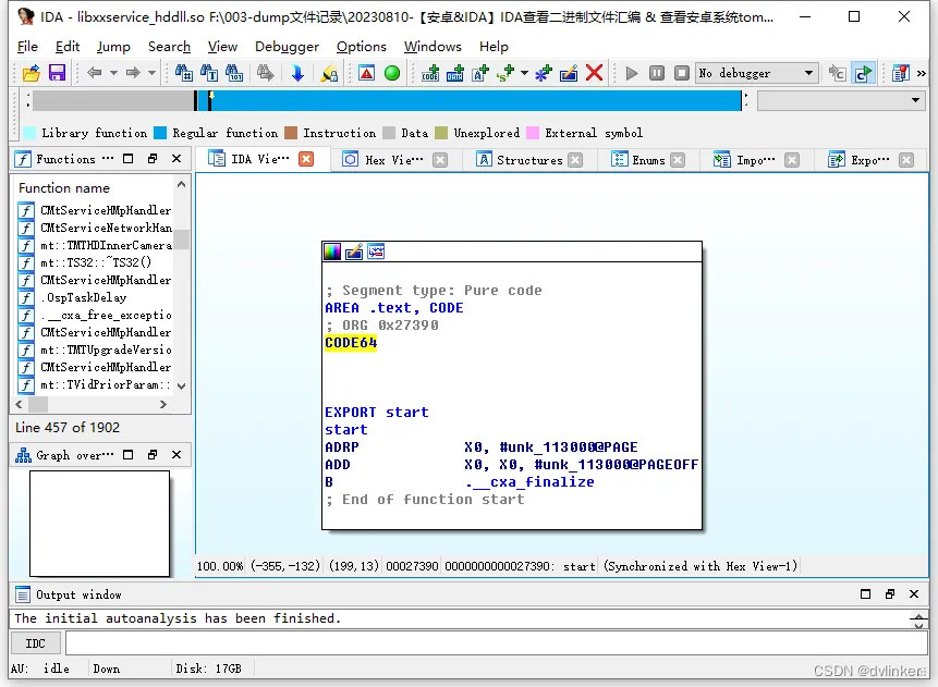 libxxservice_hddll.so动态库是64位程序,所以要使用64位的IDA打开: