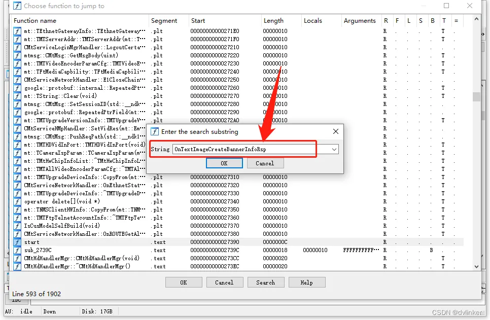 点击窗口下方的Search按钮,在弹出的窗口中输入函数名OnTextImageCreateBannerInfoRsp: