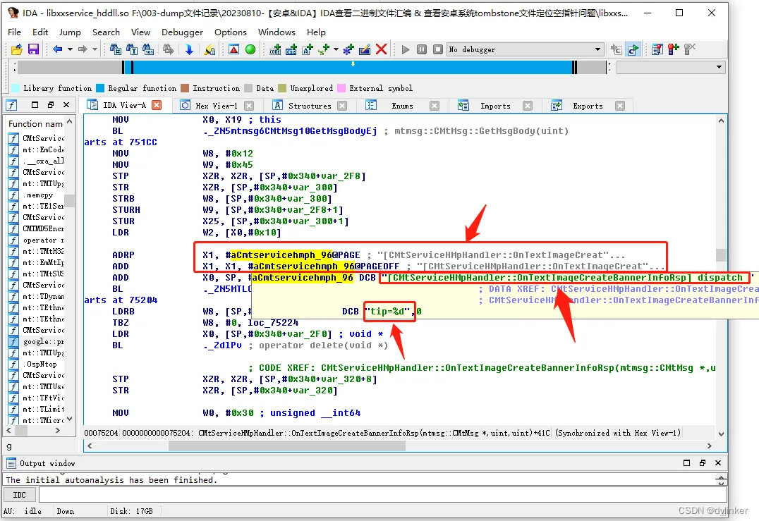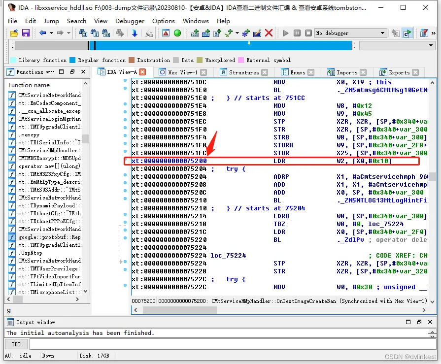 既然从函数调用堆栈中能看到具体的函数名及相对于函数(首地址)的偏移,我们可以使用IDA反汇编工具去查看函数所在模块libxxservice_hddll.so的汇编代码上下文,去辅助定位问题。