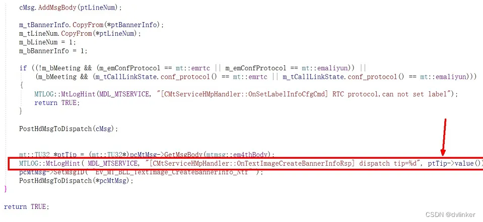 这个地方巧了,这样的字符串是打印日志中的,于是到C++源码中找到CXXXServiceHMpHandler::OnTextImageCreateBannerInfoRsp函数,在函数中找“[CXXXServiceHMpHandler::OnTextImageCreateBannerInfoRsp] dispatch”这样的打印,确实有这行打印,如下所示: