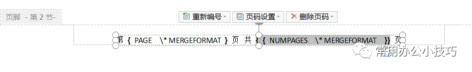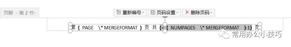 – 将“NUMPAGES\*MERGEFORMAT”剪切至括号中