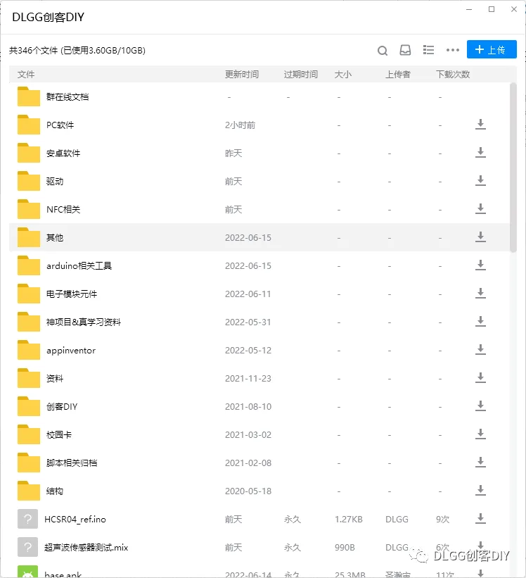 先说B类:这个主要是群友分享的工具(通过聊天界面直接上传的),和一些不重要的聊天过程的文件,比如上图中的HCSR04_ref.ino,就是前两天一个新手高中生,问我超声波传感器怎么用。。。