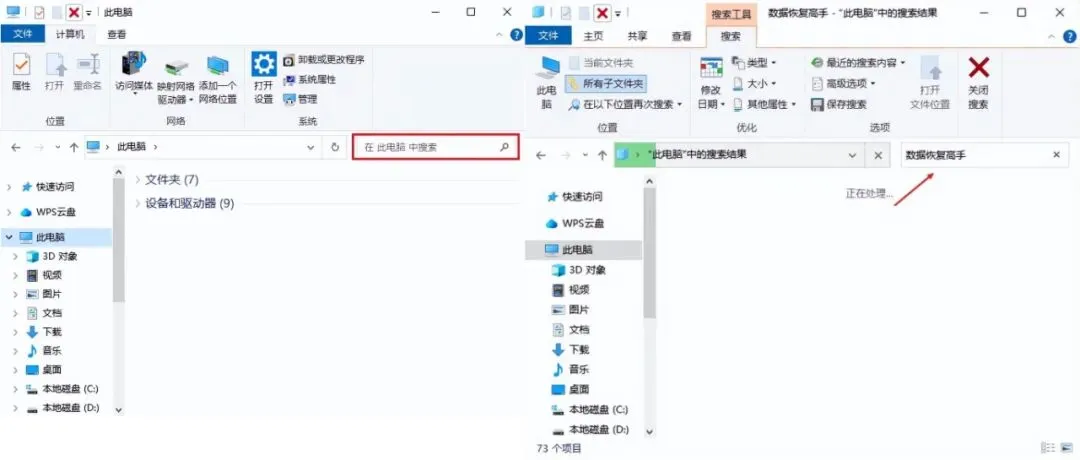 1. 进入“此电脑”界面,点击搜索栏(通常位于右上角)。