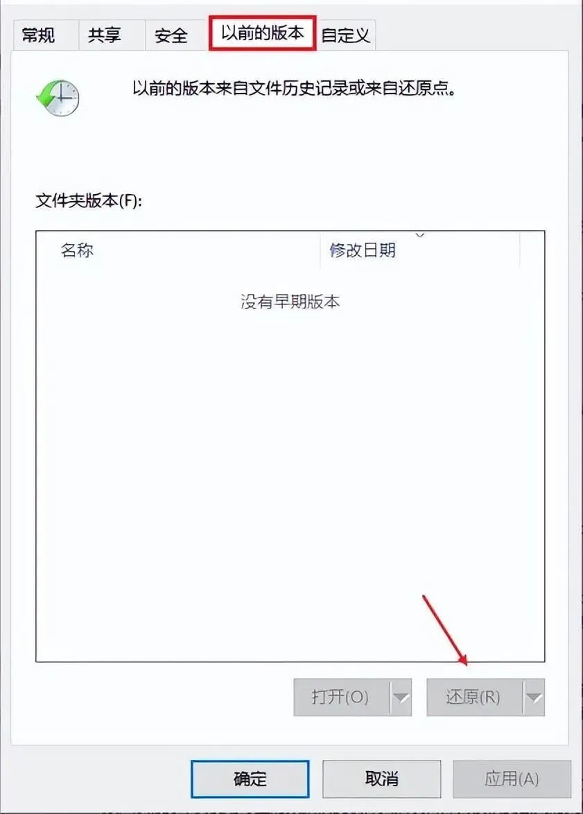 需要注意的是:如果出现“没有以前的版本可用”的情况,可能是因为您从未启用系统保护功能,或从未使用过文件历史记录或Windows备份。
