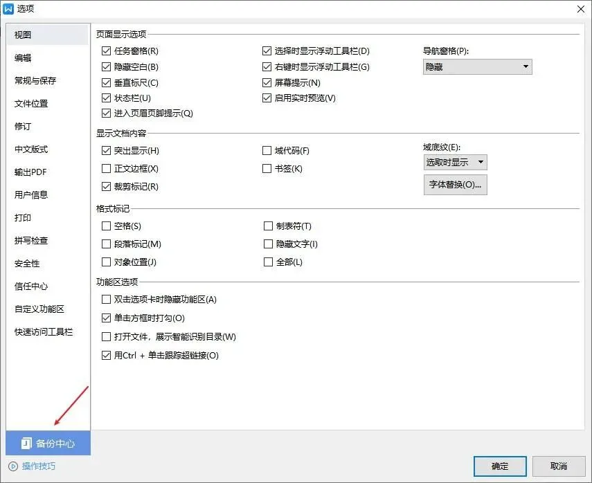 点击“文件”->“选项”->“备份中心”,根据打开的备份中心界面中找到误删的文档,选择另存到其他位置中即可。