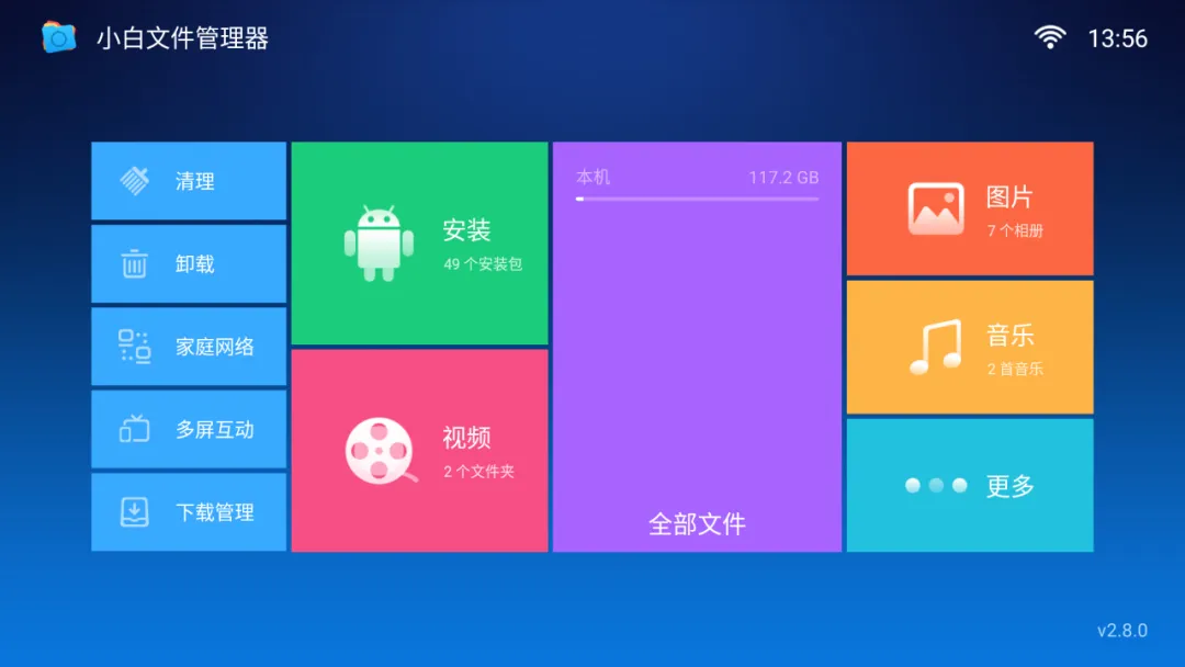 小白文件管理器是一款简洁、易于使用的TV端文件管理工具,主要面向普通用户,尤其适合新手用户食用。小白文件管理器具有以下特点: