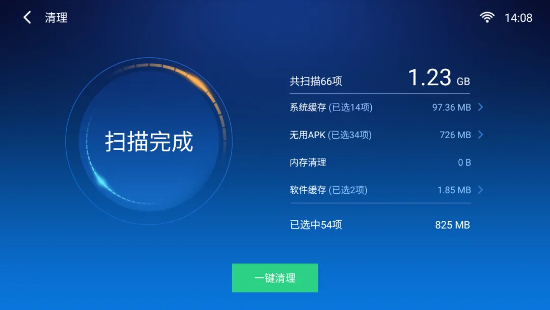 3. 系统清理:系统缓存,无用apk,内存清理,软件缓存等一键清理。