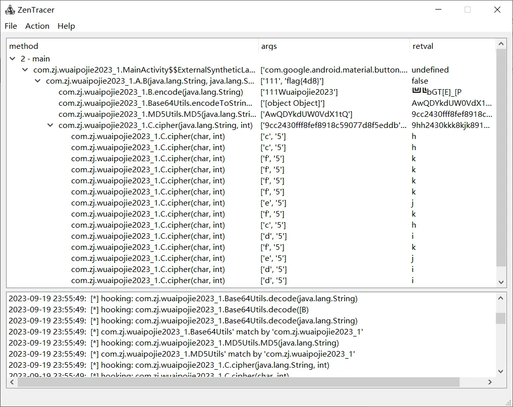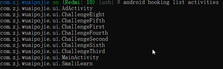 复制代码 隐藏代码android hooking list class_methods com.zj.wuaipojie.ui.ChallengeSixth