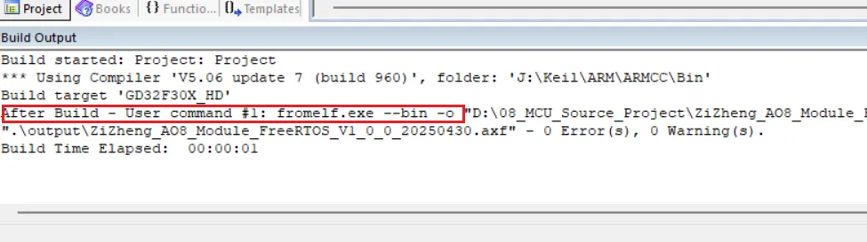 如果要生成.bin文件,则需要调用Keil内置的fromelf工具,这个工具可以在编译后自动生成bin文件,配置方法如下: