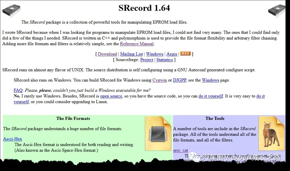 为了实现对S32DS IDE应用工程编译结果生成的S19文件进行数据填充和CRC校验和自动生成,满足bootloader开发需求,本文给大家介绍一个功能强大的嵌入式MCU Flash编程文件编辑处理工具–Srecord, 它是一个开源的S19文件处理工具,其开发初衷时为用户提供处理EEPROM加载文件的强大工具集合,其官网和下载链接如下: