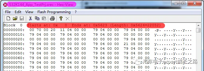文件名(Header)为:“S32K144_App_TestPrj.srec”;