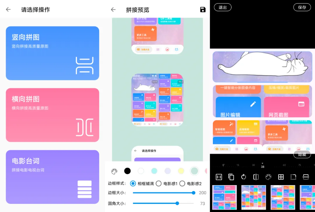 软件特色功能之一就是图片拼接,它可以将多张图片横向/竖向拼接成一张长图,此外,还提供了多种拼图样式自由选择,以满足我们不同的拼图需求。