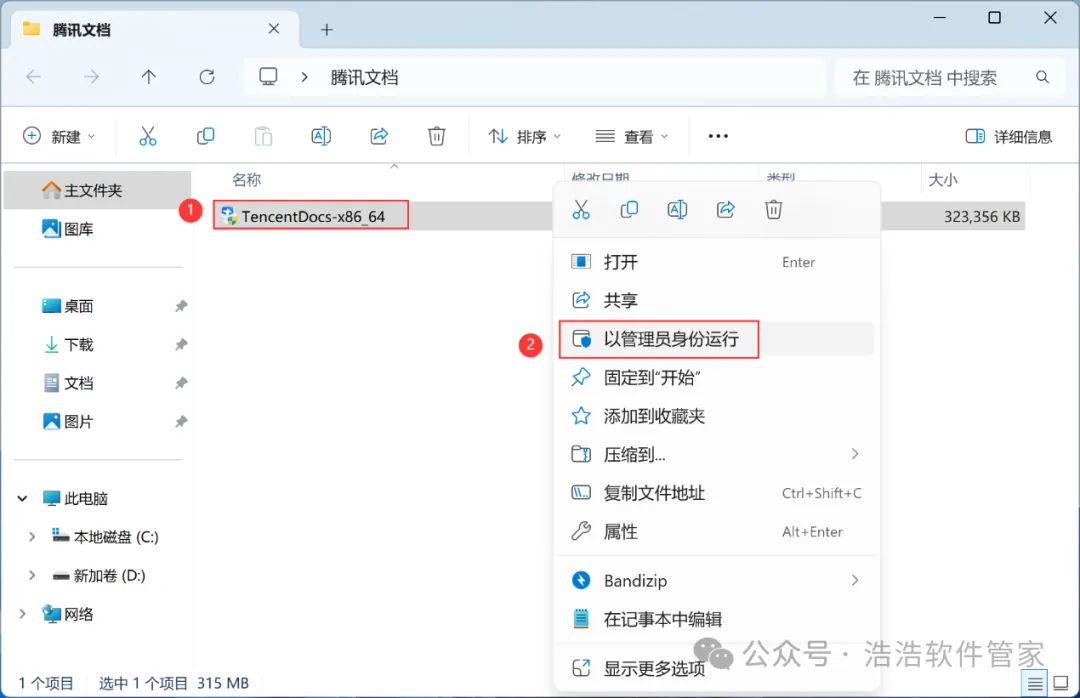 3、找到【腾讯文档】应用程序,右键选择【以管理员身份运行】它