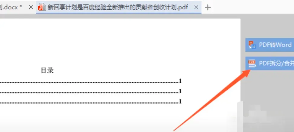 1、首先wps打开一个pdf的文件,点击pdf拆分/合并。