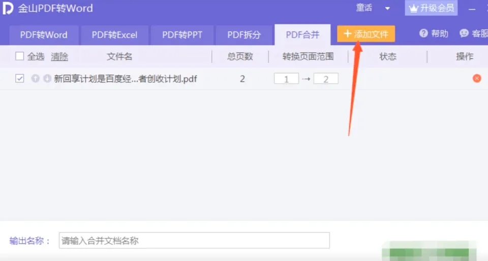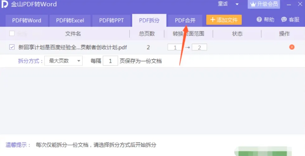 2、会弹出一个pdf转word的窗口,点击pdf合并的选项。