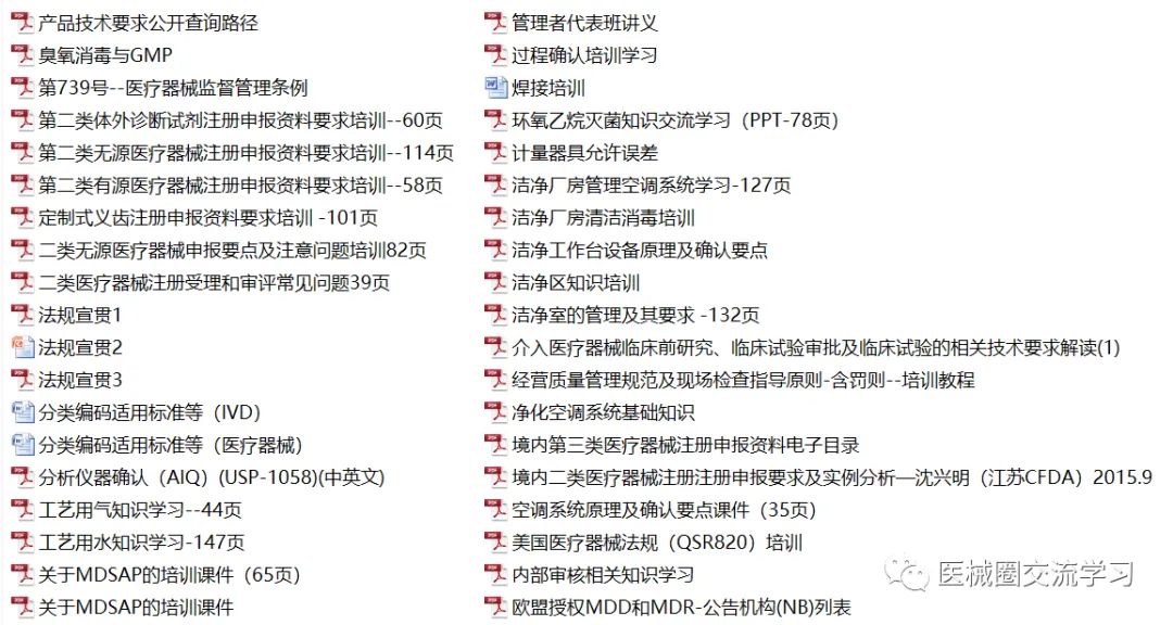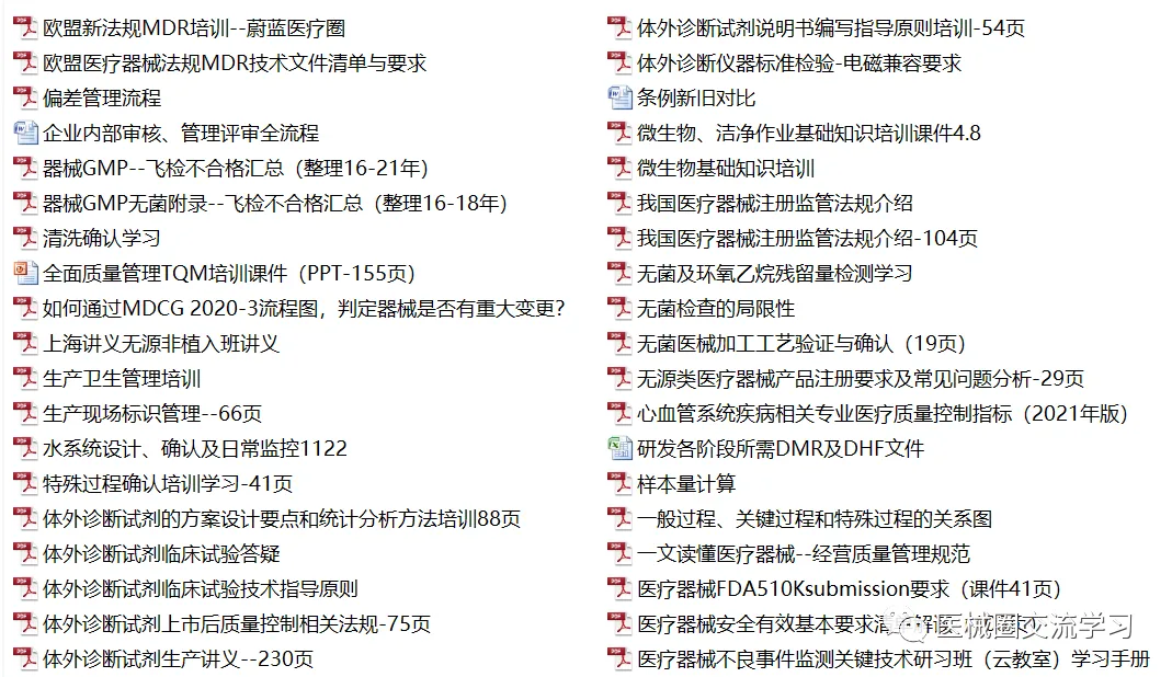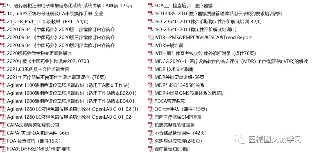资料库9000+份,加入会员即可入群打包快捷下载,持续新增,共享资料包括培训教程(包含监管机构培训课件+原创培训课件)+国内/国际/ISO/GB/YY法规标准+注册/体系/研发/验证/管理模板等