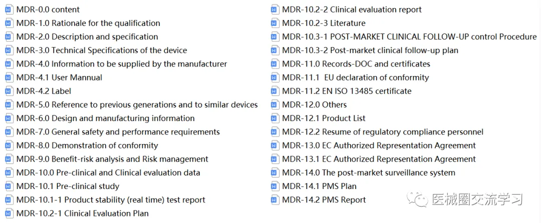 欧盟MDR认证提交技术文档模板