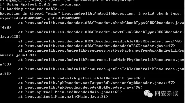 从错误提示看是资源文件读取出错了。这种情况下基于apktool的很多反编译的IDE也会报错。JEB可以反编译,但提示资源文件没有全部处理。