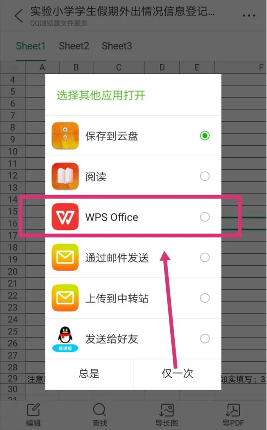 5.选择“WPS office”注意:如果手机里没有装WPS,这里是找不到的。要安装WPS office并登陆账号