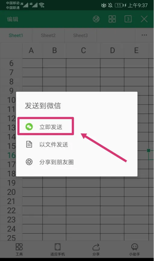 7.选择“微信”分享,这里可以不要点下面的“多人编辑”