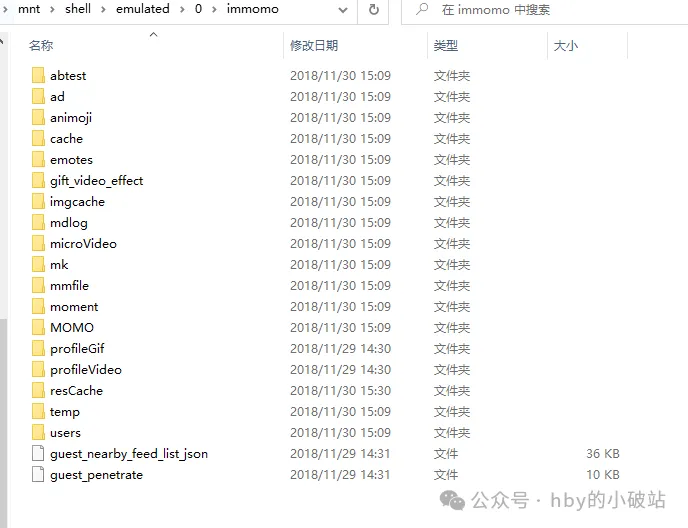 很明显这里是系统安装应用的根目录,好到这里我们找到了应用安装的根目录,那么之后就是去找momo这个软件的目录里去看用户数据,发现了如下两个文件夹有带momo的关键字,我们优先查看,看是否有我们需要的语言信息
